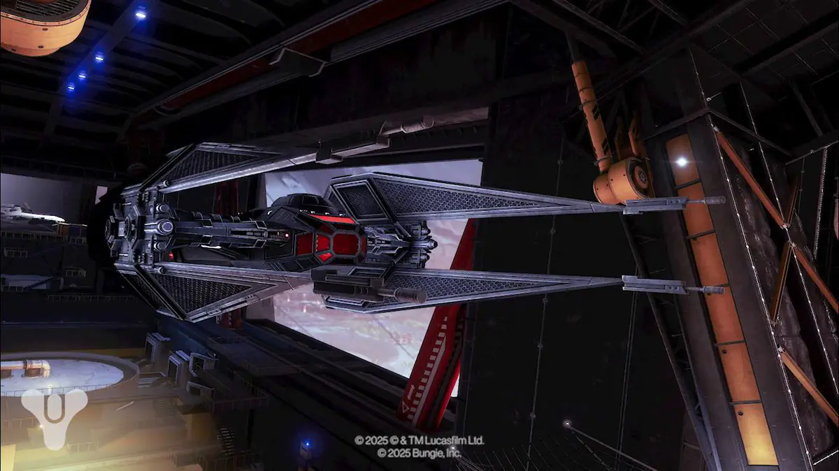 First things first about the ship: sleek and mean, essentially Kylo Ren’s TIE Silencer with a Destiny paint job. According to Bungie, the ship is “inspired by” Star Wars, but let me be honest—it’s outright plagiarism. To say it other ways, in the words of the players, “Inspired is putting it lightly.”
