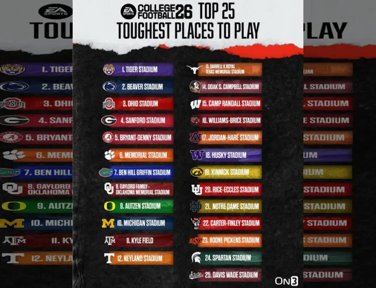 EA Sports release to date the Top 25 Toughest Places to Play in College Football 26 has pissed off the internet. The listing went out on a tweet...