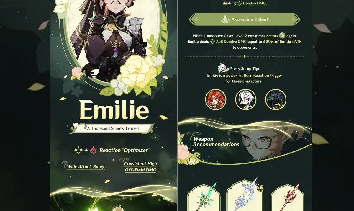 Starting with the vibes: Emi’s kit has been controversial in its way ever since she came about. Burn reactions-esoterically explosive-have been welcomed and almost evenly opposed. Some, like SalimMo40579980, flatly said she “really need[s] Kinich”-that is the Pyro Archon-for any of the unversed-to ever see her in its glory, while others, including B0iThirsty, were already naming her their “best Dendro applicator.” The mid-chaos is the domain of debating-as terrancekatsuki and fatui_ilsignore struggle-especially: do she and Arlecchino work together (spoiler alert: they don’t, just like burn reactions never really do).