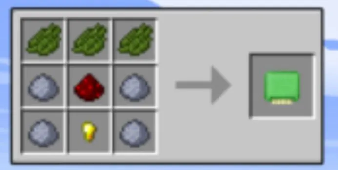 To craft a module, players will need at least four pieces of clay, a gold nugget, a Redstone, and three green dyes. This recipe gives the crafter a single blank module, which, while interesting to look at, is entirely unable to locate anything.