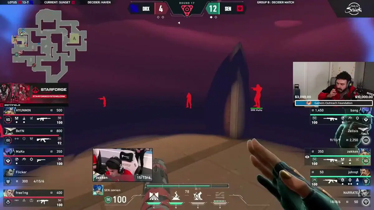 Just on an opening, the energy felt immense with Sentinels coming in swinging and the DRX starts sliding back! One absolute star: N4rrate. Who would have thought that he was cracked on Fade? Drops so smooth they could have been butter. One fan actually asked, “Genuine question, who’s a better Fade than n4rrate?” And good luck finding an answer to that analogy.